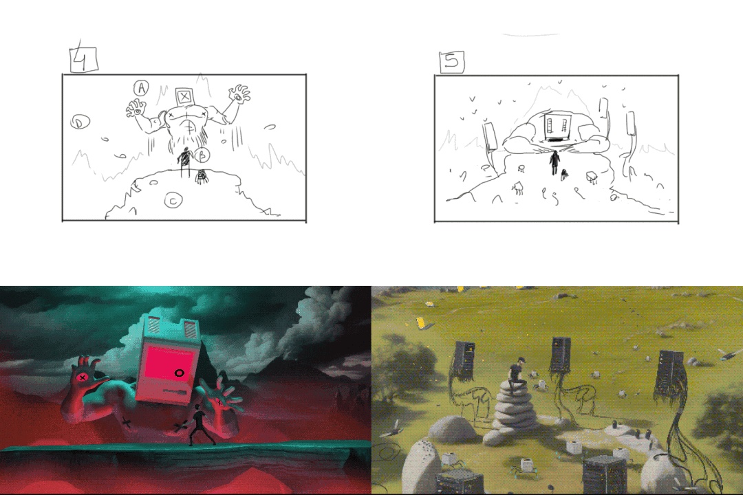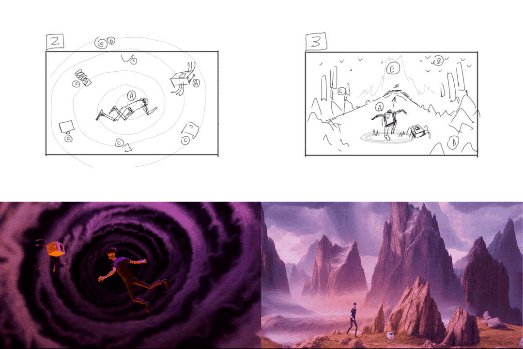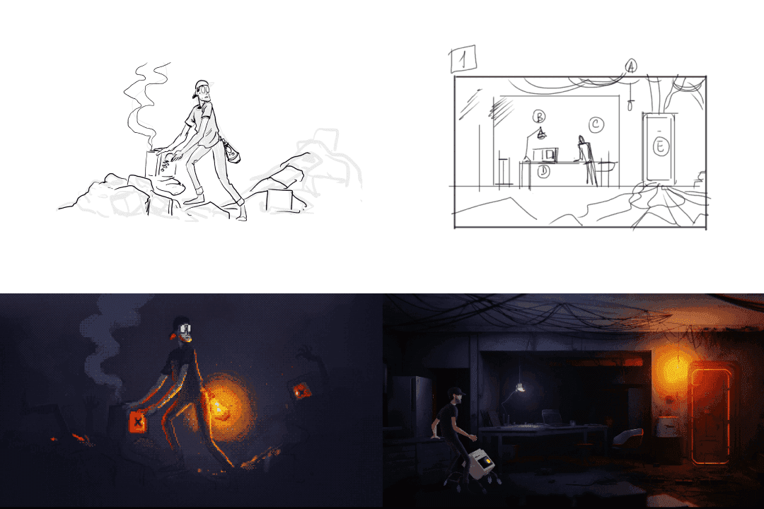 We started by brainstorming a script, putting together a mood board, and crafting a main storyboard, all based strictly on our character dialogues. Worth mentioning is that this story does feature characters from our PC game, Looper. Thus, you can think of this project as an exciting extension of that original narrative and lore.
